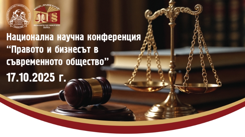 Националната научна конференция „Правото и бизнесът в съвременното общество“ ще се проведе на 17 октомври 2025 година в хибриден формат (присъствено и онлайн) от 9.30 часа. Присъствено форумът ще се състои в Зала 1 на ИУ – Варна. Чрез конферентна връзка може да наблюдавате пленарния дискусионен панел „Правото в ерата на изкуствения интелект и дигиталната трансформация: баланс между иновации, сигурност и права“ със секции: