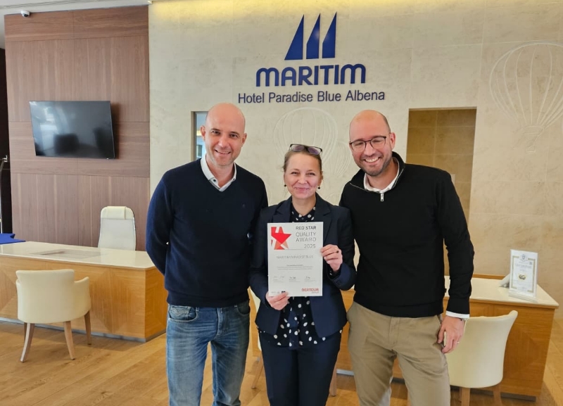 Хотел Маритим Парадайс Блу, Албена продължава да получава престижното отличие „Червена звезда“ – награда за качество от германския туроператор DERTOUR (Дертур), затвърждавайки мястото си сред най-добрите хотели в света.