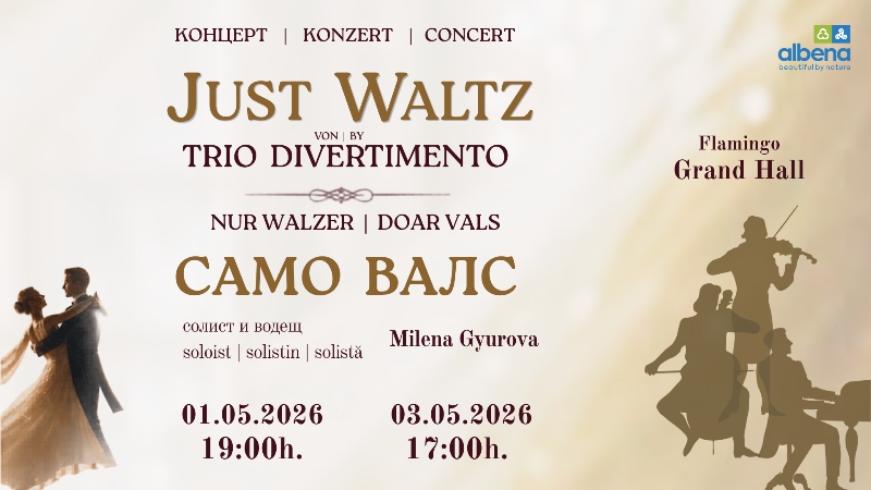 Началото на майските празници в курортен комплекс Албена стартира с клавирно трио „Дивертименто”, коeто на 1 и 3 май ще завладеe гостите и почитателите на музиката в магията на валса.