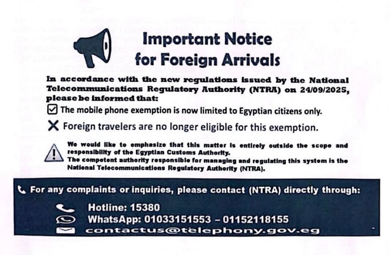 Туристите, пристигащи в Египет, вече не могат да регистрират мобилните си телефони безплатно.