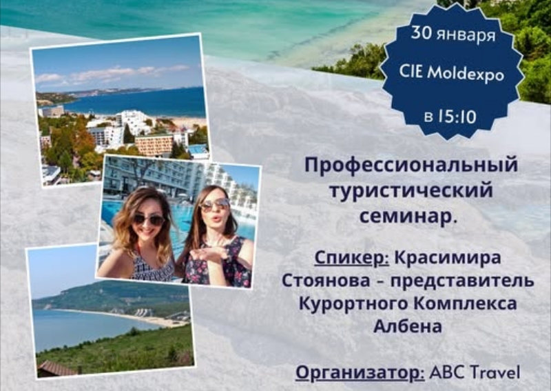 С радостью приглашаем вас на профессиональный туристический семинар, посвящённый одному из самых популярных курортов Болгарии — Албене.